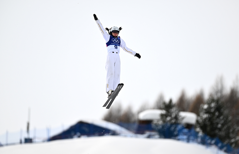 新华社相片,利维尼奥(意大利),2026年2月18日\n 2月18日,中国选手邵琪在决赛中。\n 当地期间2月18日,珍惜大利利维尼奥举行的米兰-科尔蒂纳冬奥会目田式滑雪女子空中技能决赛中,中国选手徐梦桃获得冠军,队友邵琪和孔凡钰分获三、四名。\n 新华社记者 张宏祥 摄