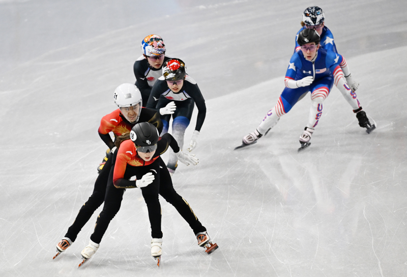 新华社相片,米兰(意大利),2026年2月18日\n 2月18日,中国队选手公俐(前)、张楚桐在比赛中致力于。\n 当地期间2月18日,在米兰-科尔蒂纳冬奥会短谈速滑女子3000米致力于B组决赛中,中国队获得第别称。\n 新华社记者 程敏 摄