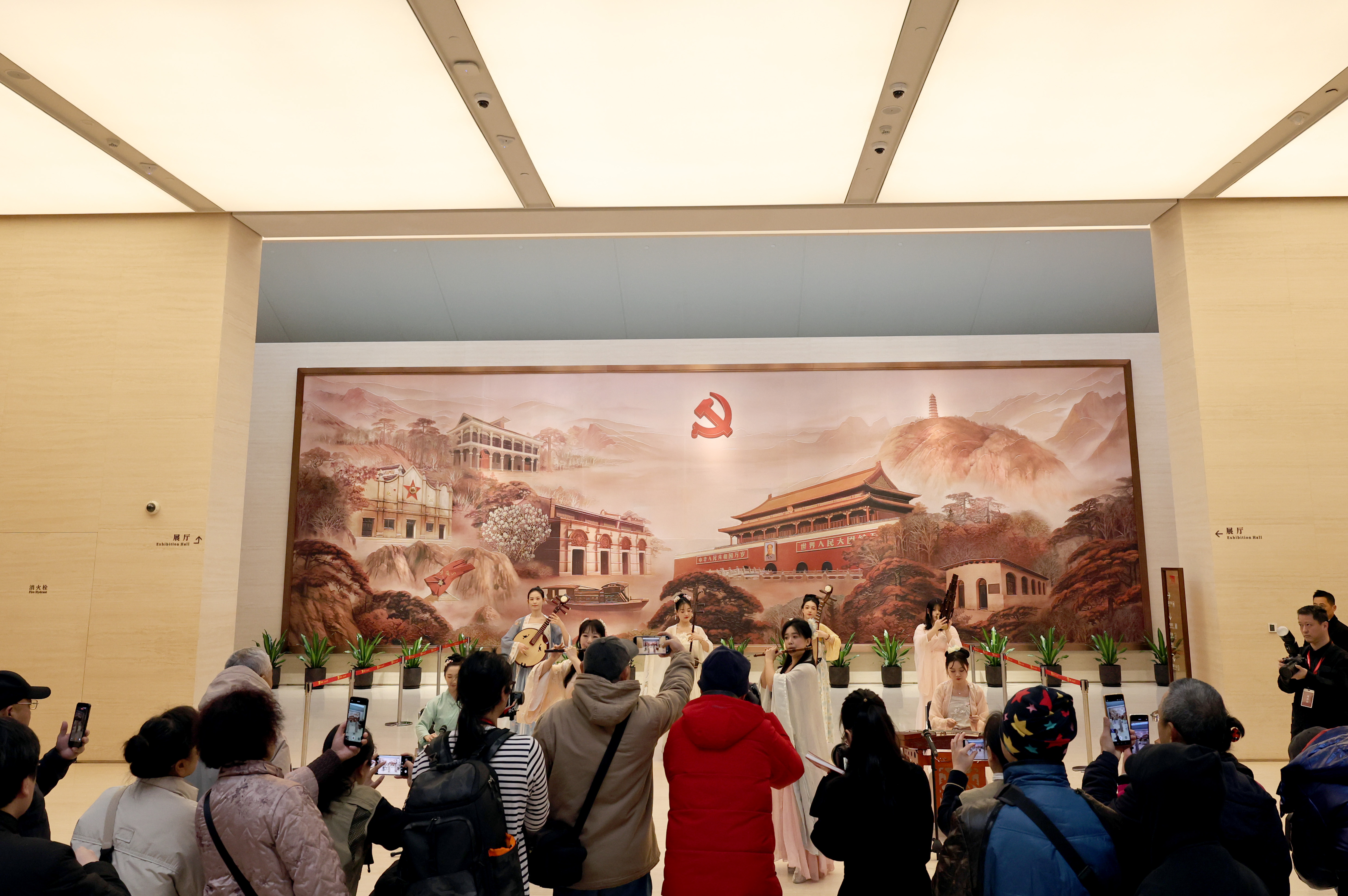 2月17日,参不雅者在中共一大顾忌馆内不雅看饰演。新华社记者 方喆 摄