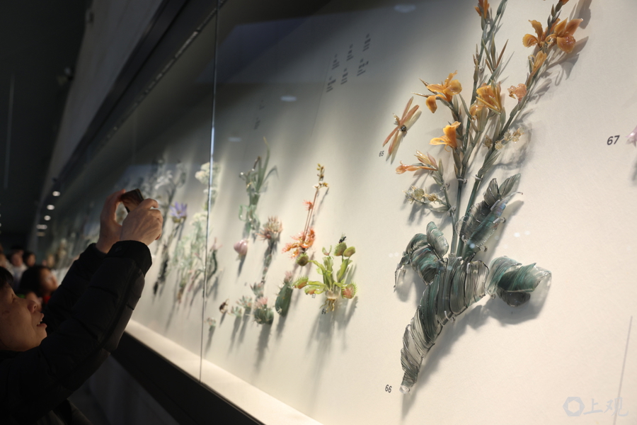 不雅众在参不雅由玻璃和绘制艺术连合打造出的百赞成物。