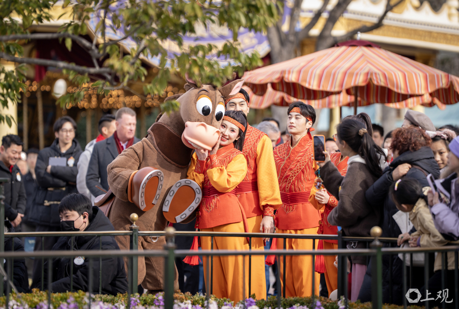 值此马年发轫,这一传统新春庆典还迎来了一位异常的迪士尼一又友——来自迪士尼·皮克斯《玩物总动员》系列中深受注释的小马红心惊喜现身,与身着新春节日盛装的米奇和米妮一同欢庆佳节。