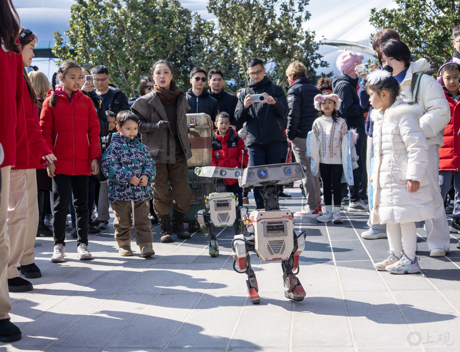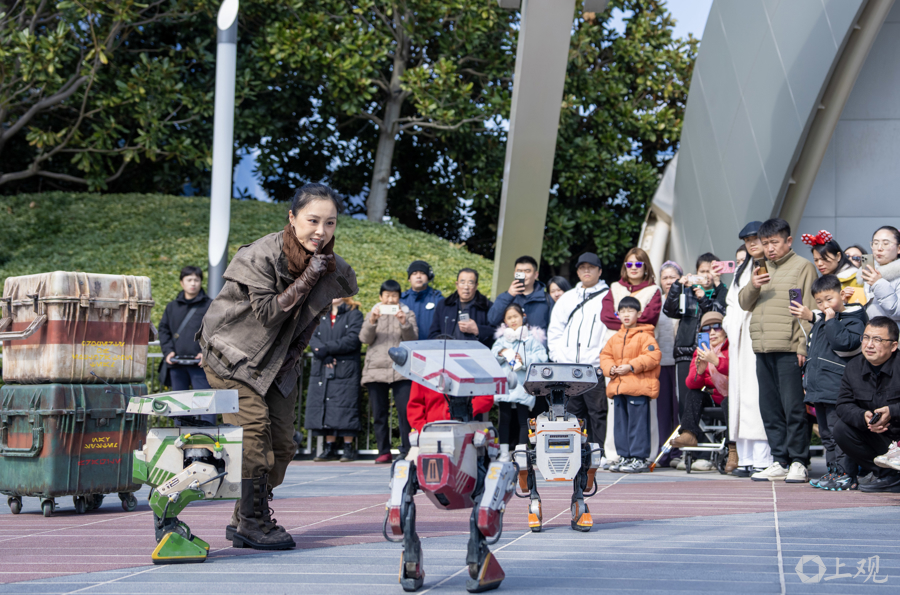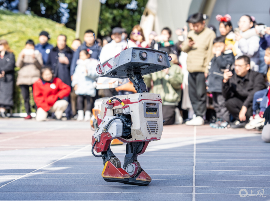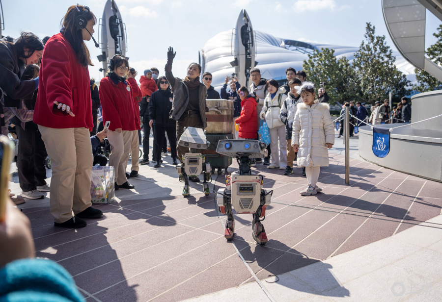 在明日宇宙,来自《星球大战》的全新BDX机器东说念主初次在上海迪士尼度假区亮相。